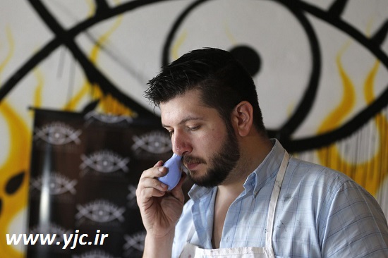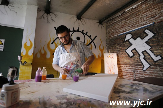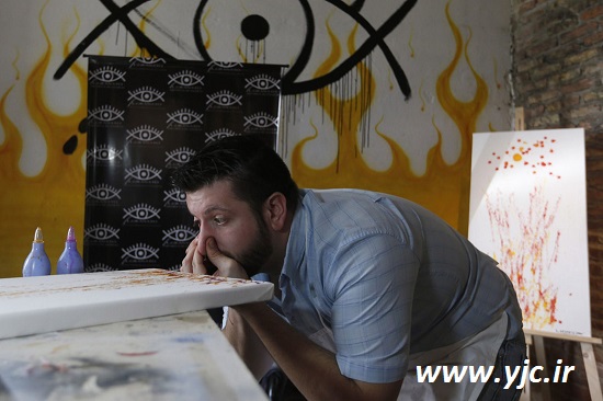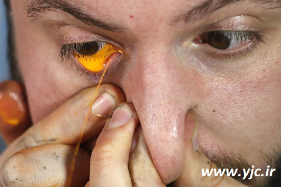 این جوان 27 ساله رنگ های مختلف را از بینی اش به بالا فرستاده و آن ها را به چشمش می رساند سپس با فشار دادن غدد اشکی آن ها را خارج می کند. برای کشیدن هر نقاشی او باید نزدیک به 800 میلی لیتر رنگ را وارد چشمانش کند.