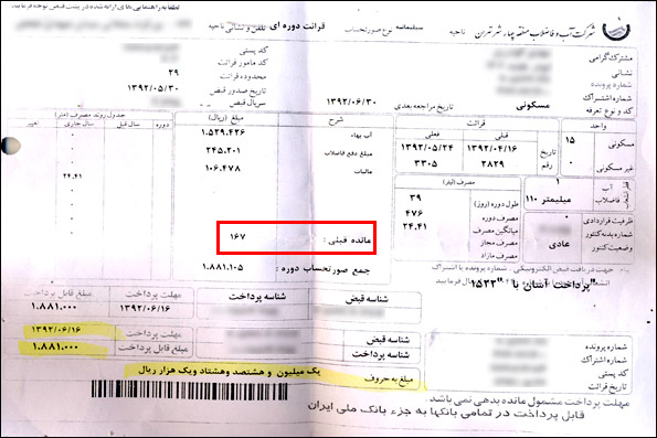 آخرین قبض آب قبل از اعمال افزایش