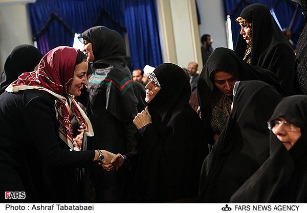* فعالان زن حاضر در این مراسم که ظاهرا خشنودی زیادی از انتصاب معاون جدید رئیس جمهور در امور زنان داشتند، در زمان سخنرانی وی بارها حرفهای وی را قطع کرده و کف زدند.