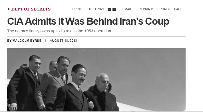 در باب نقش آمريکا در کودتاي 28 مرداد 1332 نيز ميتوان به اسنادي که به تازگي سازمان سيا منتشر کرده است مراجعه کرد.
