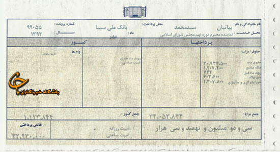 آخرين فيش حقوقی يک نماينده مجلس + تصوير