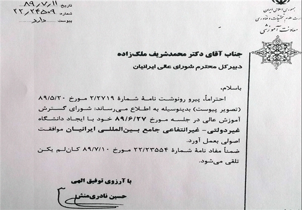 مجوز رسمی ایجاد دانشگاه جامع بینالمللی ایرانیان منتشر شد