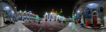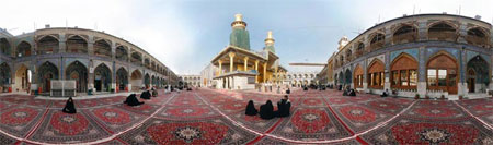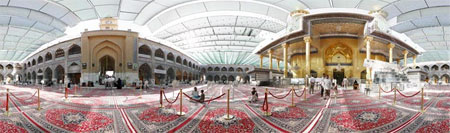 شما در این تصویر در گوشه شمال غربی صحن مطهر ایستاده و گنبد روبرو شما قرار دارد .شما می توانید گوشه هایی از تمام دیوارهای پیرامونی حرم مطهر را در حالیکه مجاور مهمانسرای حرم مطهر ایستاده اید مشاهده نمائید .