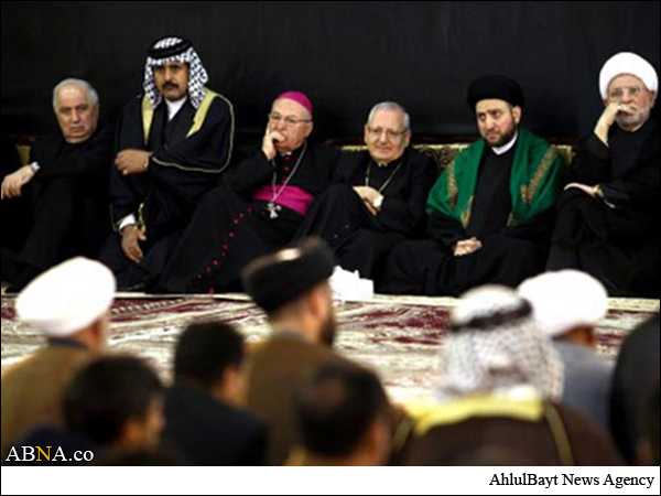 گفتنی است در همین راستا تصویر زیر نیز از شرکت علمای مسیحی عراق در یکی از مجلس عزاداری محرم امسال در دفتر «حجت الاسلام سید عمار حکیم» منتشر شده است.