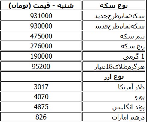 مهر: نرخ فروش هر قطعه سکه تمام بهار آزادی طرح جدید در روز شنبه هفته جاری در بازار 931 هزار تومان، طرح قدیم 930 هزار تومان، نیم سکه 475 هزار تومان، ربع سکه 276 هزار تومان و گرمی 190 هزار تومان اعلام شد.