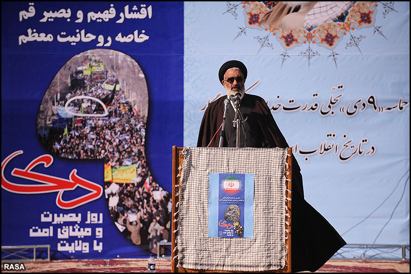 امام جمعه قم با بیان اینکه یزیدیان زمان در روز عاشورا حرمت امام حسین(ع) را شکستند، اظهار کرد: مردم این بی حرمتیها را تحمل نکرده، غیرت دینی آنها به جوش آمد و جدای از اینکه به چه کسی که در انتخابات رأی داده بودند به خیابانها آمده و مشت محکمی بر دهان دشمنان زده تا هوس کودتای مخملی در ایران را به گور ببرند.
