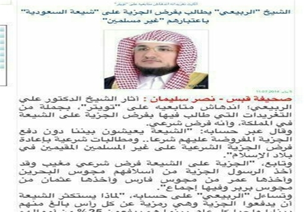 این مفتی سعودی نوشته است که چرا شیعیان باید از پرداخت جزیهای تعجب و یا فرار کنند که سالیانه یک دینار برای هر نفر میشود.