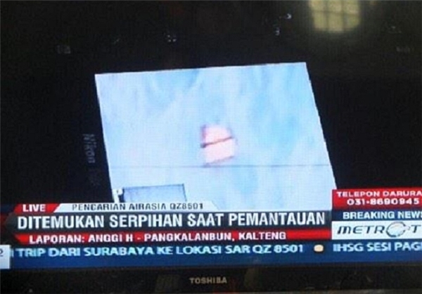 همچنین خبرگزاری رویترز گزارش داده است که تلویزیون اندونزی در حال پخش تصاویری از قطعات شناور روی آب است که به نظر میرسد متعلق به هواپیمای گمشده باشند.