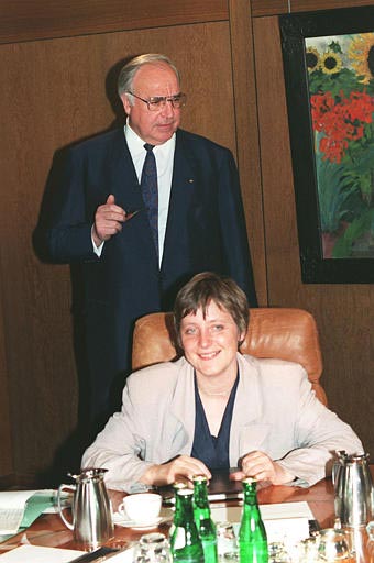 او در سال 1989 و پس از فروریزی دیوار برلین عضو حزب جدیدالاتاسیس بیداری دموکراتیک گردید و به سرعت مدارج ترقی در آن را طی نمود. مرکل پس از ائتلاف حزبش، در کابینه سوم هلموت کوهل به پست وزارت جوانان و زنان رسید. بعدها وی به انتقاد از کوهل پرداخت و اعتقاد داشت میباید هوای جدیدی میباید در حزب بدمد. او در سال 2010 رهبری حزبش را عهدهدار شد. انتخابی که بسیاری از مفسران را متعجب کرد.