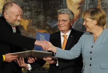 حضور مرکل در مراسم اهدای جایزه به کاریکاتوریست توهینکننده به اسلام