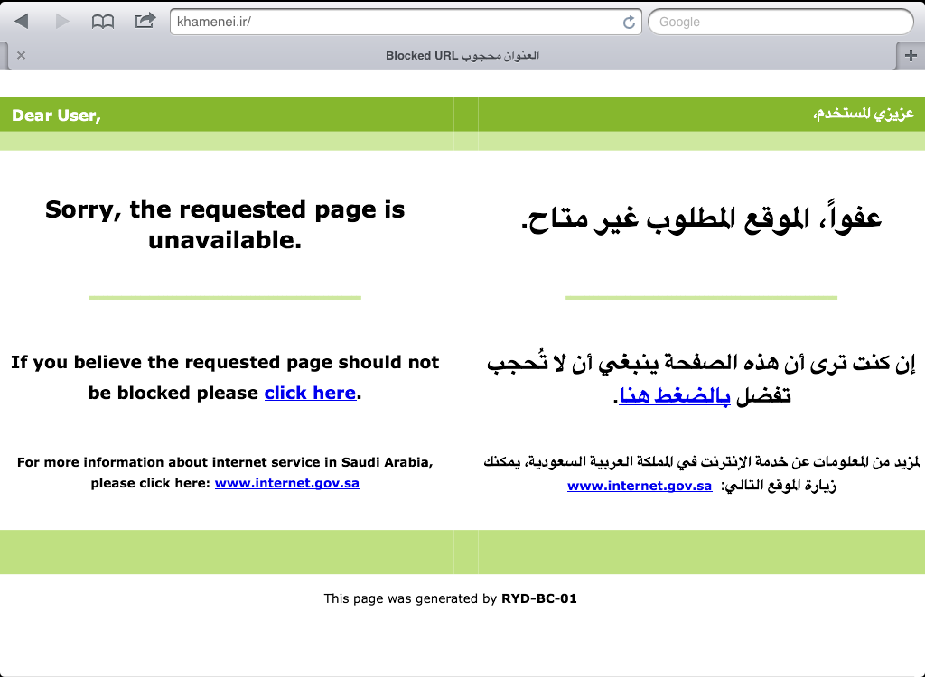 عربستان سایت رهبر انقلاب را فیلتر کرد