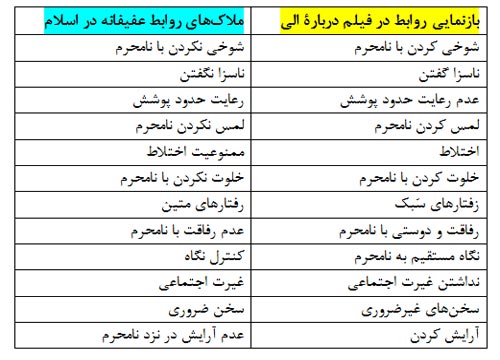 بازنمايي روابط در فيلم دربارة الي ملاكهاي روابط عفيفانه در اسلام