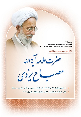 به گزارش تبیین به نقل از پایگاه اطلاعرسانی آثار حضرت آیتالله مصباح یزدی، دور جدید درس اخلاق معظمله از تاریخ 27/6/1398آغاز میشود.