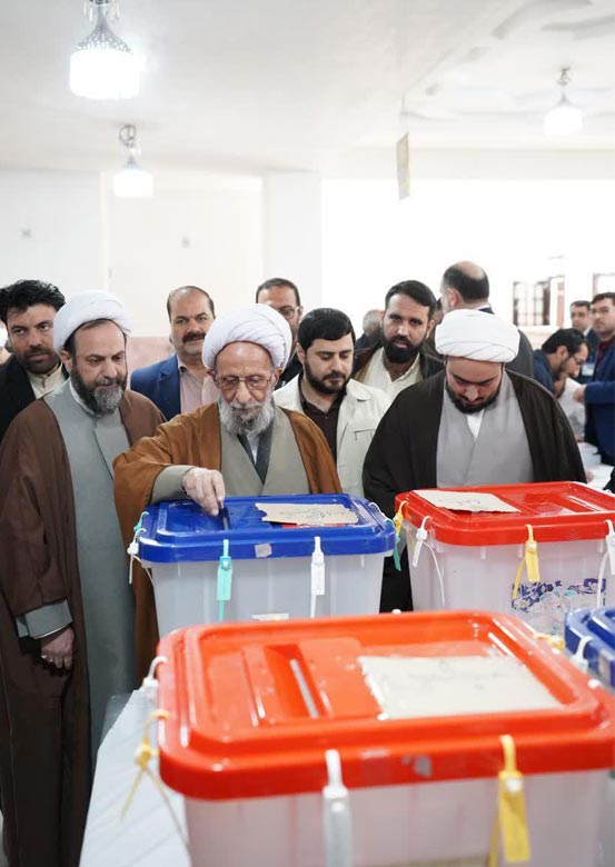 حضرت آیت الله مصباح یزدی با حضور در حرم مطهر امام رضا (ع) رأی خود را به صندوق انداختند.