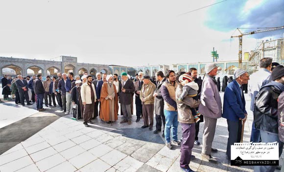 صبح روز 2 اسفند حضرت آیت الله مصباح یزدی با حضور در حرم مطهر امام رضا (ع) و ایستادن در صف طولانی رأی خود را به صندوق انداختند.