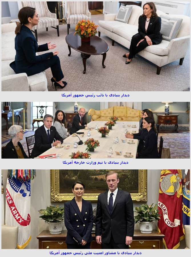 کاخ سفید در روز ۲۲ مهر ۱۴۰۱ یک شوی رسانهای ایجاد کرد و یک زن دورگه را به عنوان نماینده ایران به دیدار «کاملا هریس» نائب ریاست جمهوری آمریکا، بلینکن وزیر امور خارجه آمریکا و سالیوان مشاور امنیت ملی کاخ سفید بردند.