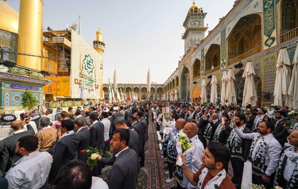 این مراسم با تلاوت آیاتی از قرآن کریم آغاز شد و پس از آن، حیدر العیساوی، عضو هیئت مدیره این آستان سخنرانی شد که در آن، وی به نمایندگی از خادمان آستان مطهر امام علی (ع) بیعت و وفاداری خود را تجدید کرد.