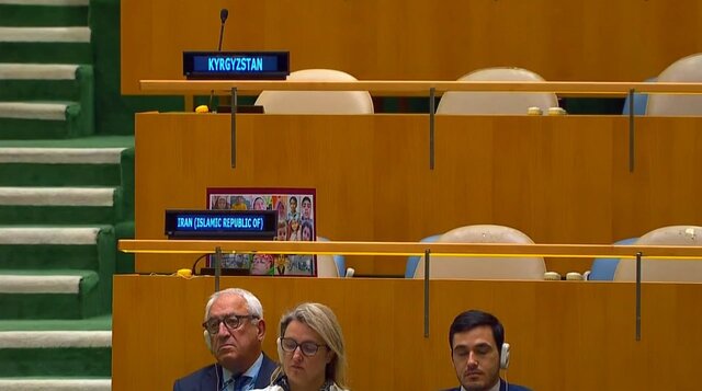 هیات دیپلماتیک جمهوری اسلامی ایران هنگام سخنرانی «بنیامین نتانیاهو» نخستوزیر رژیم صهیونیستی در مجمع عمومی سازمان ملل از سالن خارج شد و بنری از تصاویر کودکان ایرانی که در حملات تروریستی این رژیم علیه ایران به شهادت رسیدهاند را بر روی صندلیهای خالی خود قرار داد.