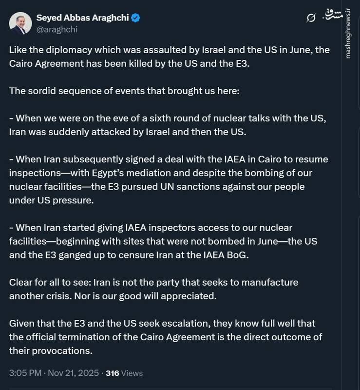 عراقچی وزیر امور خارجه کشورمان در توئیتر نوشت: