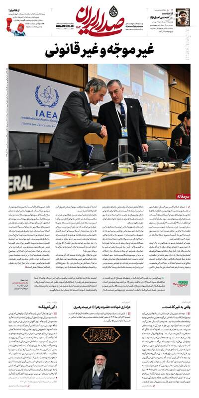 «صدای ایران»، روزنامه اینترنتی رسانهی KHAMENEI.IR ؛ در واکنش به قطعنامه شورای حکام در سرمقاله شماره صد و پنجاهوسه خود نوشت: