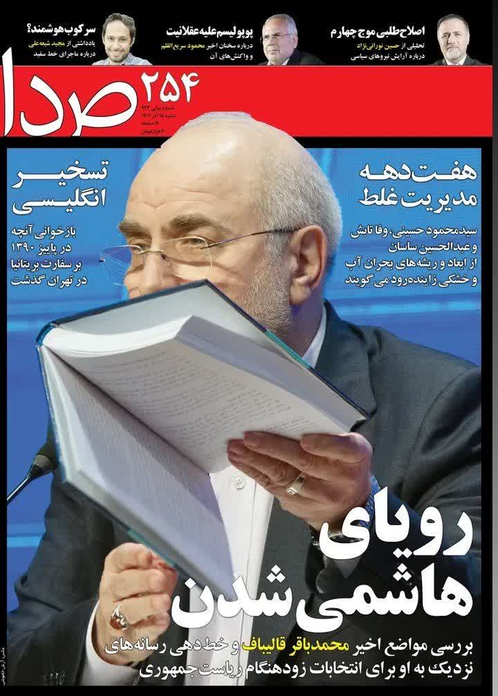 نشریه اصلاح طلب «صدا» در شماره جدید خود مدعی شده است که قالیباف و تیم رسانهای او دنبال انتخابات زودهنگام ریاست جمهوری هستند!