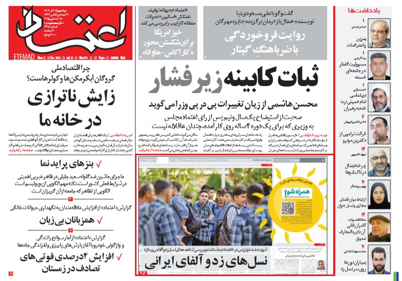 به گزارش جهان نیوز، به نظر میرسد هویت بخشی روزنامه اصلاح طلب اعتماد به این دسته بندی و اصرار به تکرار آن بیشتر یک بازی سیاسی است؛ چرا که این ادعاها هیچ سند پژوهش و پشتوانه علمی ندارند و بیشتر از تخیلات نویسنده و گردانندگان آن رسانه سرچشمه میگیرد. در این گروه سنی که مُصر هستند نام نسل Z را بر آن بگذارند، مثل همه نسلهای گذشته انسانهای متفاوت با سلایق و رفتارهای گوناگون دیده میشوند. لازم به یادآوری است که چند ماه پیش هم حضرتی فردی را به عنوان مشاور نسل Z برای خود منصوب کرد!
