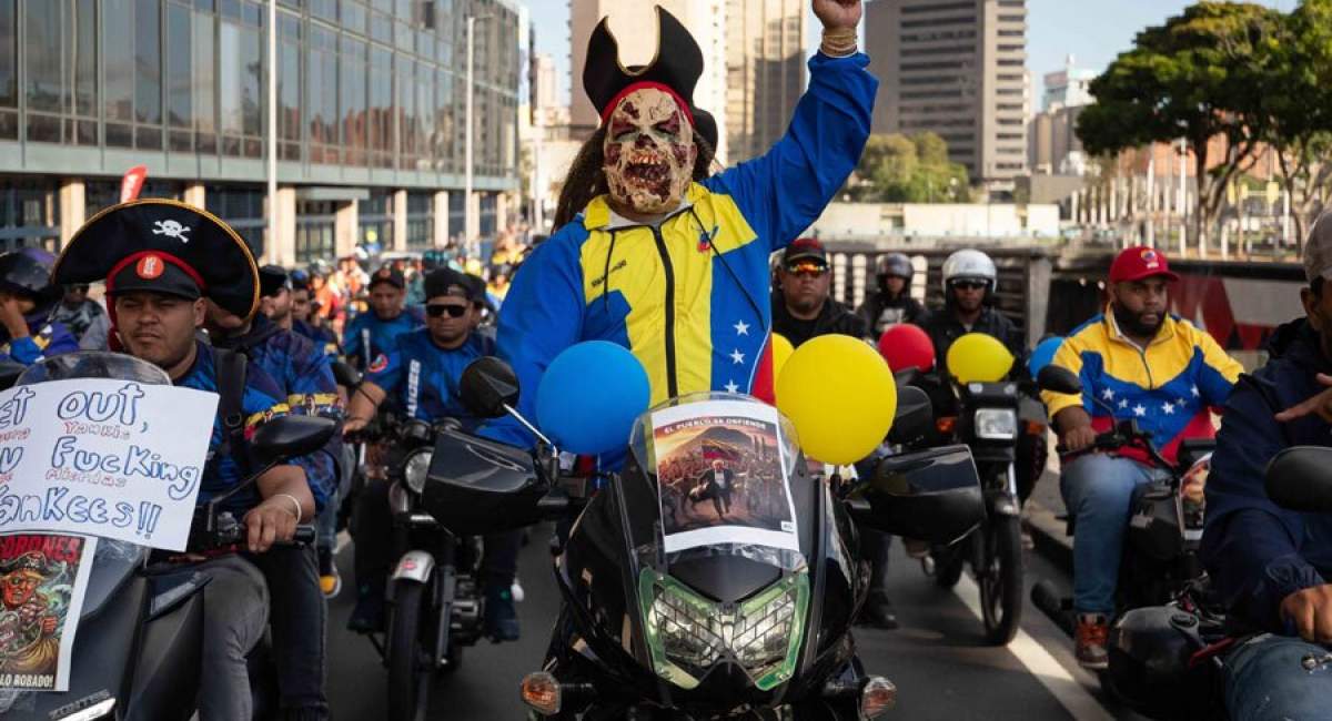 تصویری از تظاهرات در پایتخت ونزوئلا علیه دزدی دریایی آمریکا و توقیف نفتکش های ونزوئلا را مشاهده می کنید.