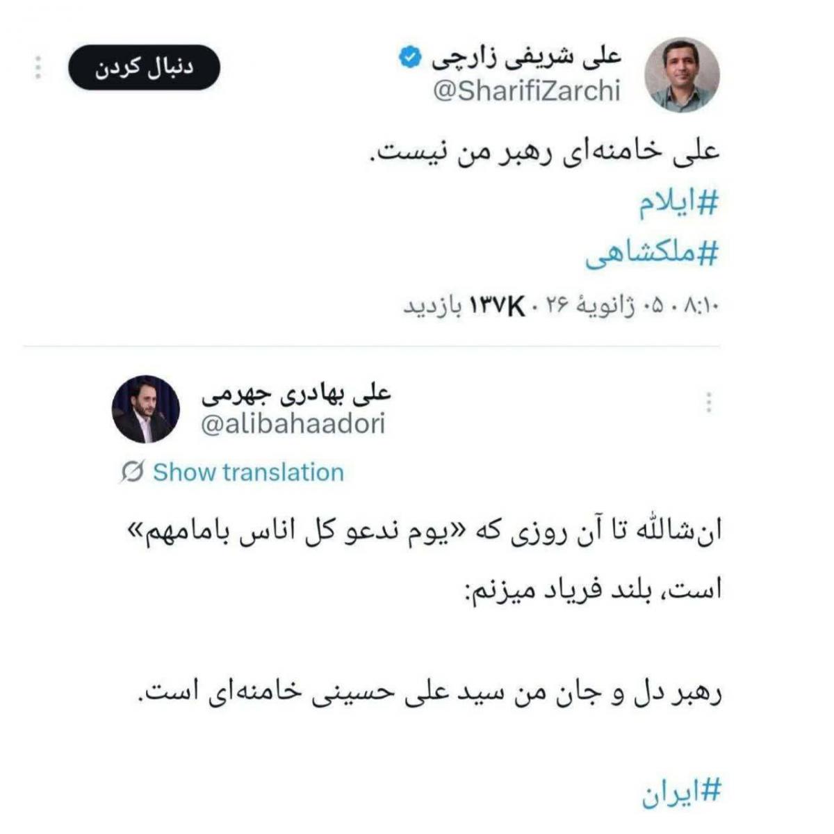 بهادری جهرمی عضو هیات علمی دانشگاه تربیت مدرس در واکنش توهین شریفی زارچی به رهبر انقلاب نوشت: