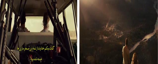 در دقایق پایانی فیلم، پس از ناکام ماندن جبرئیل، جیپ و چارلی (مادر منجی) بر فراز تپهای مشرف بر شهر رو به افق میایستند؛ به این معنا که نجات بشریت در دستان این زوج و نوزادشان است. سپس آنها را در ماشینی پر از اسلحه، در حال حرکت در جاده میبینیم. در باور مسیحیان صهیونیست قدرت منحصر در سلاح و ابزار مادی است. همانگونه که در تمام فیلم هیچ اثری از قدرت ماورائی و غیر مادی وجود نداشت.