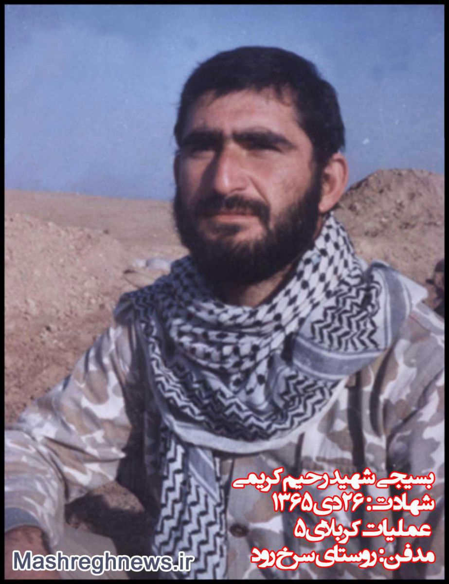 رحیم کریمی ، وقتی حضرت روح الله از ایران تبعید شد ، فقط یک سال داشت و 23 سال بعد ، در رکاب حضرتش ، در وادی شلمچه ، پنجه بر بام عرش گرفت و بر ایوان آسمان نشست.