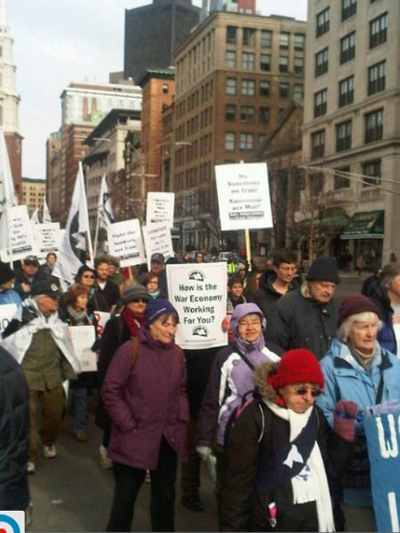 هزاران آمریکایی معترض به سیاستهای دولت آمریکا علیه جمهوری اسلامی ایران در کنار جمعی از ایرانیان مقیم آمریکا، با شعار "نه به جنگ، ترور، تحریم و دخالت در امور داخلی ایران" در بیش از 79 شهر آمریکا، به خیابانها آمدند.