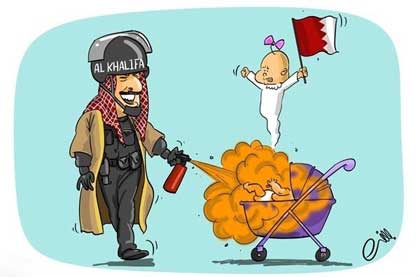 به گزارش واشنگتن پست، دوشنبه گذشته بحرین سالگرد انقلاب معترضینش را با گازهای اشکآور آمریکا به خشونت کشاند، گازهایی که از شرکت CSI در جامستون آمریکا تولید می شوند. این در حالی است که تعداد شهدای بحرین به 56 نفر در 367اُمین روز قیام این مردم بعد از انقلاب 14 فوریه رسیده است.