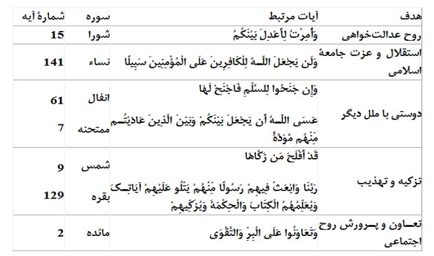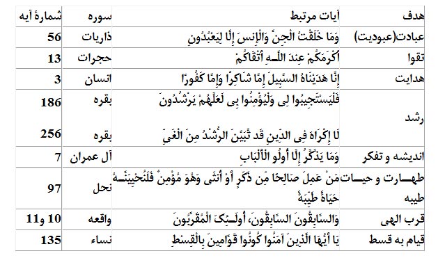 جدول شمارة 1. هدف هاي غايي تعليم و تربيت در قرآن