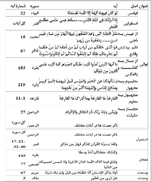 جدول شمارة 3. اصول سازمان دهي محتواي برنامه درسي و برخي مصداق هاي قرآني