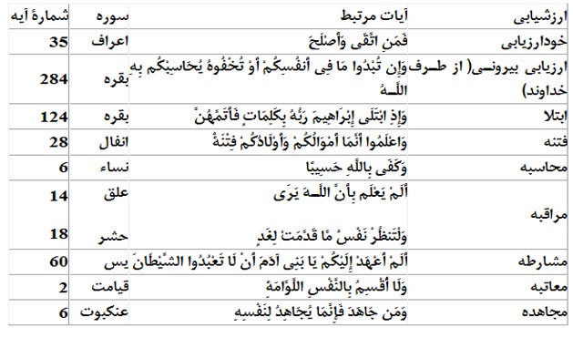اول مقولة خودارزيابي است؛ آنجا كه از مردم مي خواهد از گناهان بپرهيزند و با اعمال شايسته، خود را ارزيابي كنند .