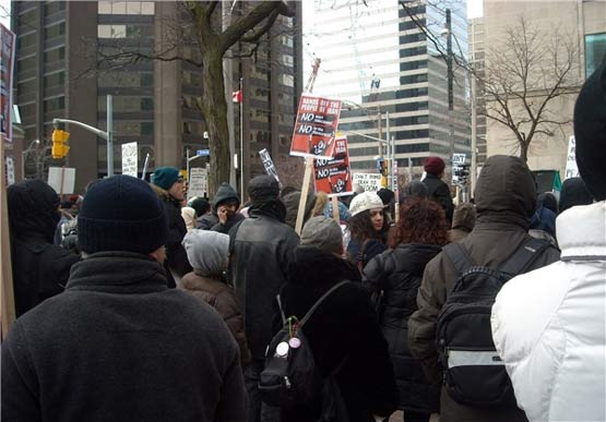 بنا بر این گزارش، در این تظاهرات اعتراض آمیز یش از ۳۰۰ نفر از مردم کانادا و یهودیان ضد جنگ شرکت داشتند. در این گردهمایی سخنرانیهایی توسط نمایندگان سازمانهای ضد جنگ در کانادا برگزار شد.