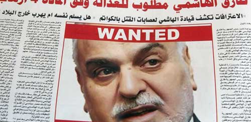 يک کميته تحقيقاتي در وزارت کشور عراق، ۱۹ دسامبر ۲۰۱۱ بعد از اينکه سه تن از محافظان هاشمي به گرفتن دستور از وي براي انجام حملات تروريستي اعتراف کردند، قرار بازداشت معاون رئيس جمهور عراق را صادر کرد. الهاشمی بعد از اين موضوع به منطقه کردستان عراق فرار کرد.