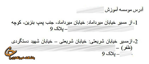 آدرس يکي از موسسات آموزشي بي بي سي در تهران