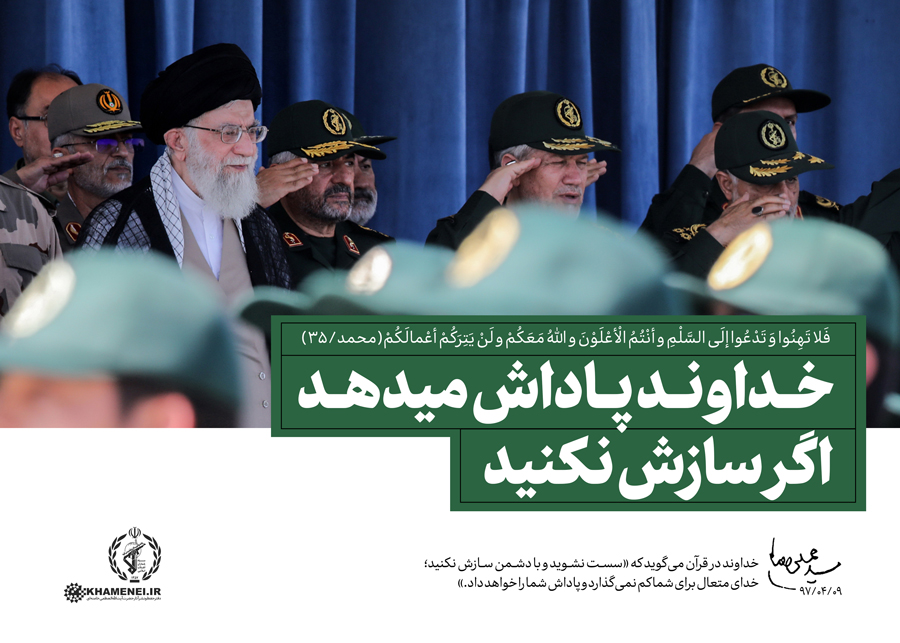 و نسخه ی «تسلیم» را برای ملت و نظام اسلامی تجویز می کنند. آن ها «میگویند تسلیم بشویم تا دشمن علیه ما موذیگری نکند.» (1397/4/9)