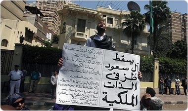 صدها فعال، حقوقدان و وکیل حقوقی که از اقدام عربستان سعودی در بازداشت یک فعال مصری به خشم آمده بودند، در مقابل سفارت عربستان در قاهره و کنسولگری آن در شهر سوئز تظاهرات برگزار کردند.