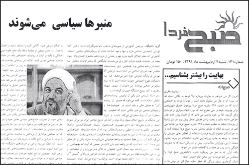 وقتی که به آن مجلس حضور یافتم سه نوشته تک صفحه ای از دو نشریه که یکی "صبح فردا" و دیگری "سریر" بود، دریافت کردم.