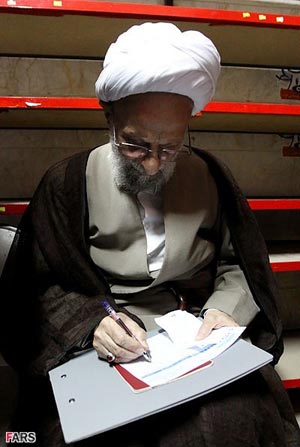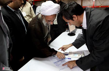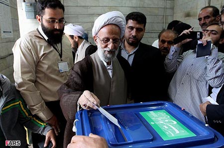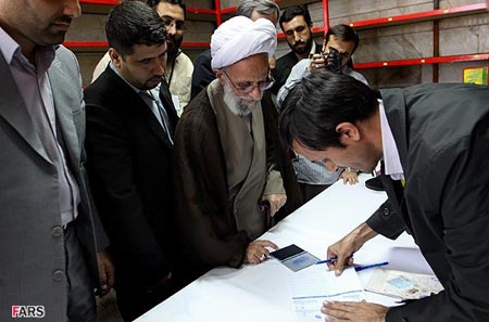 آيت الله مصباح يزدي كه براي شركت در انتخابات مرحله دوم مجلس به شهر تهران سفر كرده است، صبح امروز با حضور در صندوق شماره ۴۴۸ تهرانپارس راي خود را به اين صندوق انداخت.