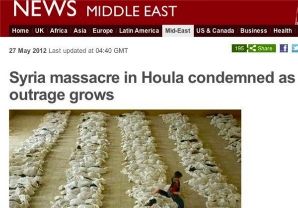 این دروغ بزرگ رسانههای برای اولین بار نیست که علیه سوریه استفاده میشود بلکه سال گذشته نیز کشتار چندین کودک که متعلق به عراق بود، به ارتش سوریه نسبت داده شد.