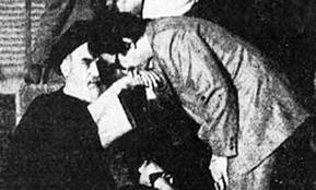 ابوالحسن بنیصدر در حال بوسیدن دست امام خمینی (ره)