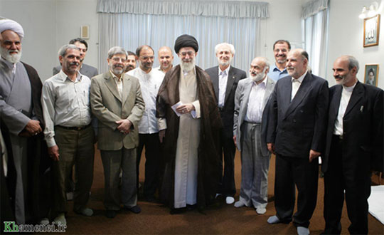 صدای اذان يعنی شوق پرواز در آسمان آبی نماز. خودمان را به نمازخانه میرسانيم، اين گروه آشنای قديمی، صف اول و دوم نماز میايستند... رهبر كه میآيد مثل پروانههای حرم رضوی كه در بهار گرد زائر حضرتش بیقراری میكنند، دور آقا حلقه میزنند. دكتر ميلانی زودتر از باقی خودش را به آقا میرساند و همينطور كه با چشم خيس به دست آقا خيره شده، دست رهبر را میبوسد و غرق آن نگاه پدرانه میشود... و چه خندهی شيرينی بر لبهای رهبر نقش بسته، خيلی وقت بود اين جمع سالهای جوانی را يكجا نديده بود... چه غافلگيری لذت بخشی.